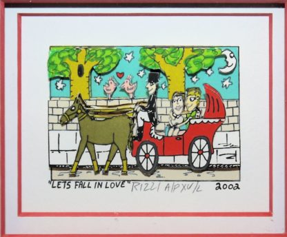 0358-James Rizzi, “Let’s Fall In Love”, signierte 3D-Farbserigraphie von 2002, galeriegerahmt, selten