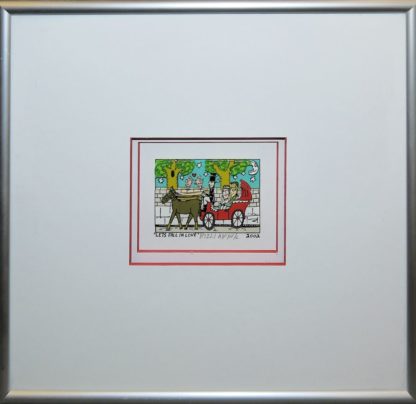 James Rizzi, "Let's Fall In Love", signierte 3D-Farbserigraphie von 2002, galeriegerahmt, selten James Rizzi, 1950 - New York City - 2011, US-amerikanischer Pop Art-Künstler, "Let's Fall In Love", 3D-Farbserigraphie, 5 x 7,5 cm, signiert, nummeriert A/P XV/L, im Druck betitelt und datiert, unter Glas und P.p. gerahmt