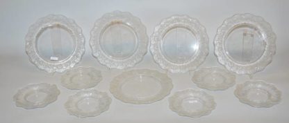 0364-Sechs Glasteller und sechs kleine Schalen “Honfleur-Geranium”, Lalique, Paris