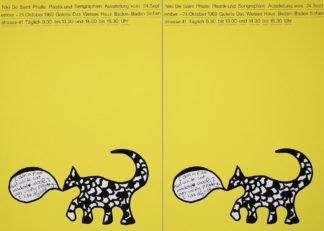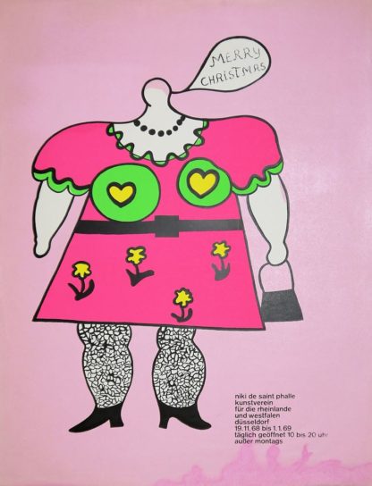 Niki de Saint Phalle (1930 - 2002) und Jean Tinguely (1925 - 1991) waren ein künstlerisches und persönliches "Traumpaar" in der Kunstwelt, das 1960 zusammenzog und eine leidenschaftliche Beziehung führte, bevor sie sich schließlich trennten. Sie arbeiteten während ihrer Beziehung eng zusammen und realisierten diverse gemeinsame Projekte, da sie sich als "Komplizen der Kunst" sahen. Ihre künstlerische Zusammenarbeit hielt bis zu Tinguelys Tod im Jahre 1991 an, hier: Niki de Saint Phalle - "Nana" mit Sprechblase "Merry Christmas", farbiges Siebdruck- Ausstellungsplakat, Düsseldorf 1968/69, 80 x 60 cm, unten rechts wenig störend wasserfleckig / Jean Tinguely - "16iéme Festival de Jazz Montreux - 9 -25 Juilet 1982", 100 x 70 cm, farbiges Siebdruck- Plakat, bez. "Silkscreen Albin Uldry/ Bern"