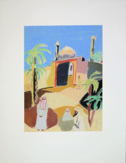 Martiros Sarjan (Saryan), 1880greg. Nachitschewan am Don - 1972 Jerewan, russisch-armenischer Maler, hier: Palmenbestandener Eingang zu einer Moschee in Ägypten, davor 4 Männer in traditioneller Kluft, Pastell/ Papier, ca. 55 x 40 cm, unter P.partout