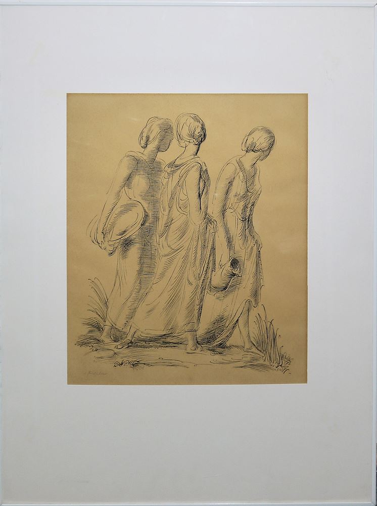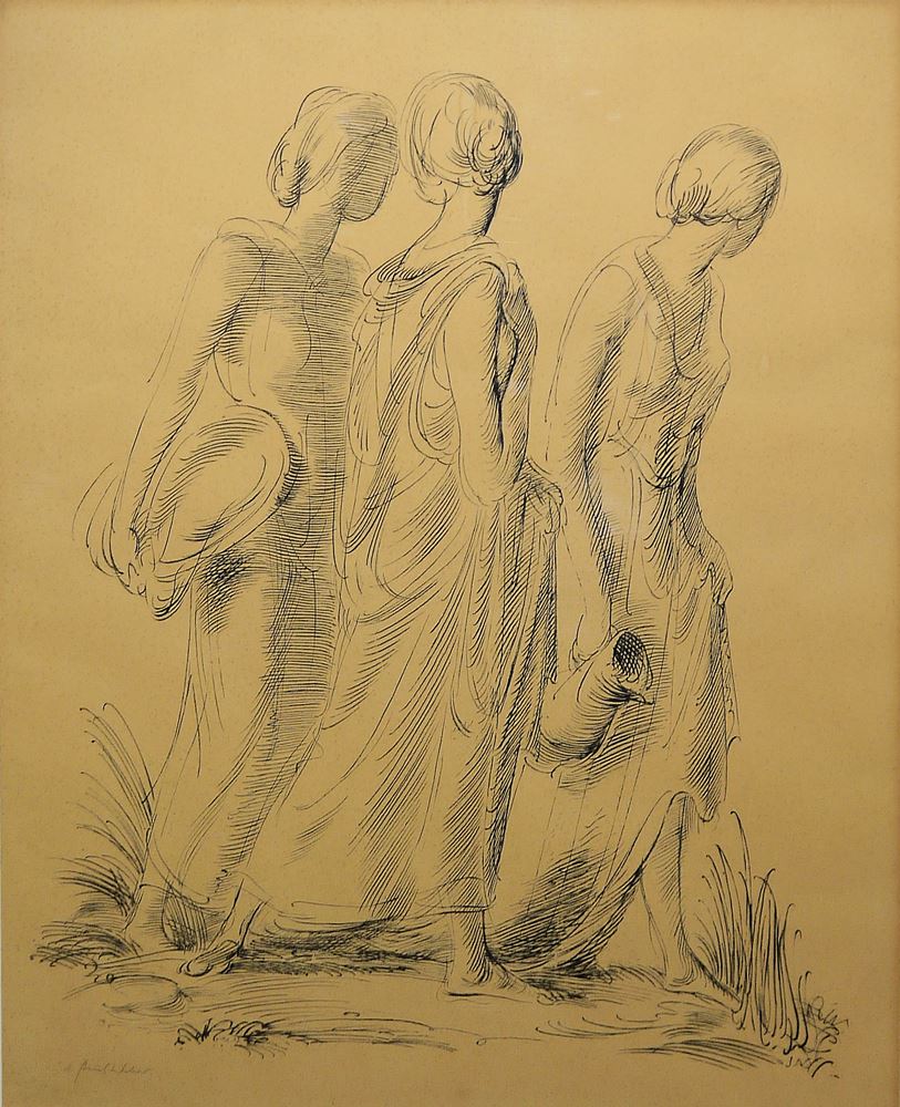 0381-Andreas Paul Weber, “Der Gang zur Quelle”, signierte Lithographie von 1952, gerahmt