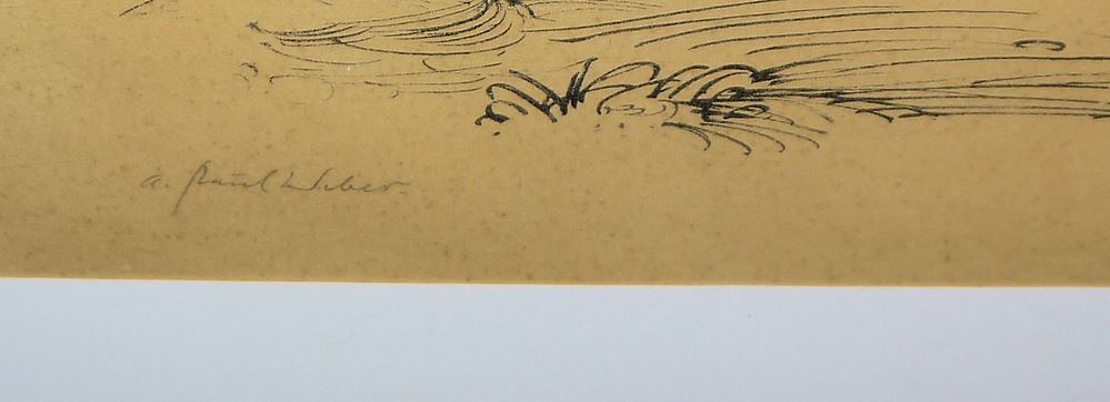 Andreas Paul Weber, 1883 Arnstadt - 1980 Schretstaken bei Mölln, Maler, Lithograph, hier: "Der Gang zur Quelle", Lithographie/braunem Papier, ca. 46 x 38 cm, signiert, unter Glas und P.p. gerahmt