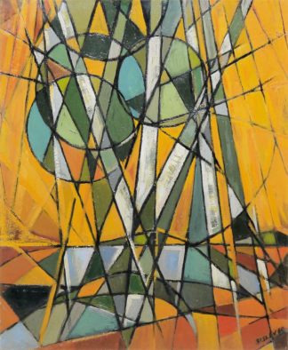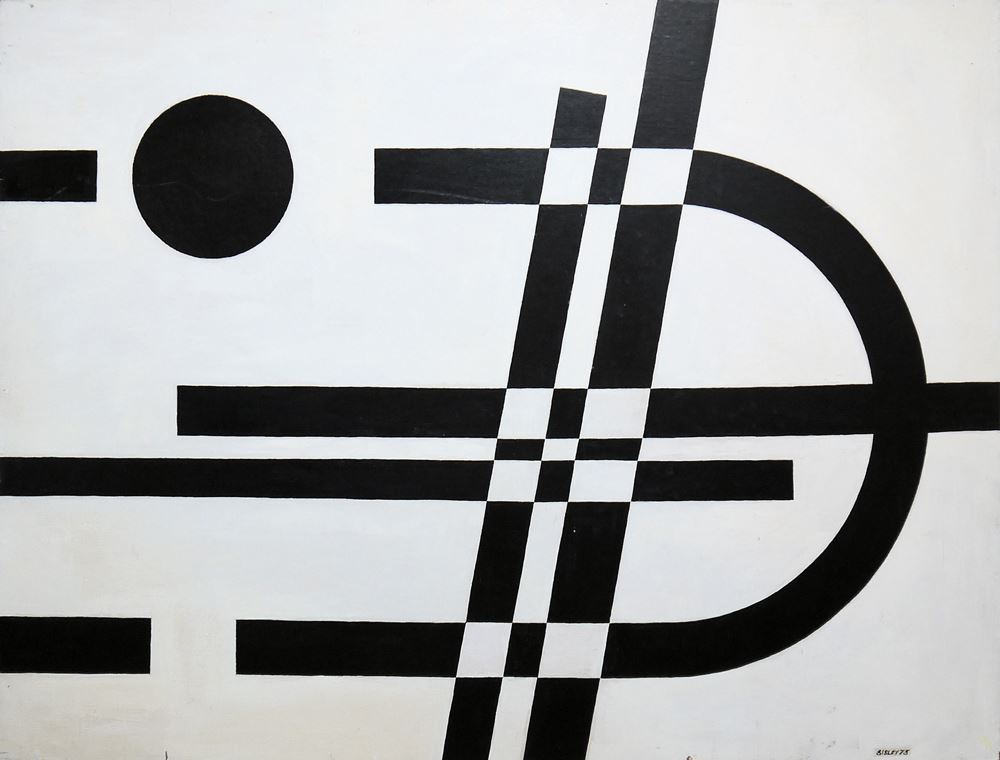 0381-Francis Sisley, “Horizontal Trident”, konkret-geometrisches Ölgemälde von 1973