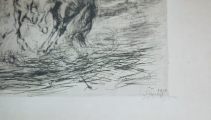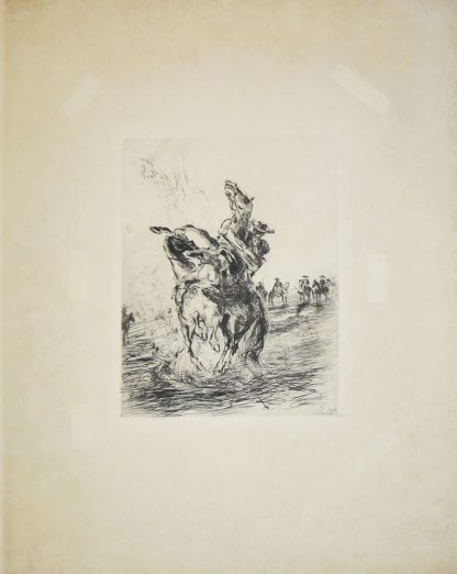 0383-Max Slevogt, Kampf zu Pferde, aus: “Schwarze Szenen”, signierte Radierung von 1904