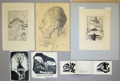 Max Slevogt, Rudolf Scharpf & Werner von Scheidt, sign. Graphik sowie Bruno Müller-Linow, Porträt Karl Tägel, Zeichnung von 1945