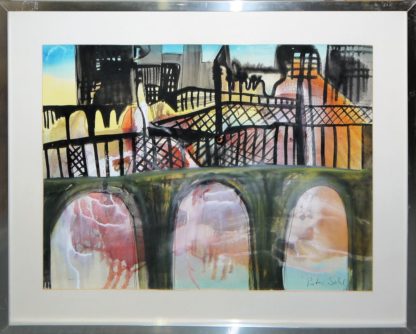 Pieter Michael Sohl, 1933 Mannheim - 2018 Heidelberg, deutscher Bildhauer und Maler, hier: Magische rote Sonne in einer Winterlandschaft & Expressive Stadtarchitektur, Aquarell/ Tusche/ Deckfarben auf Papier, jeweils sign., einmal dat. 70, je ca. 65 x 75 cm, beide unter P.partouts gleich gerahmt (Gesamt: je 75 x 95 cm)