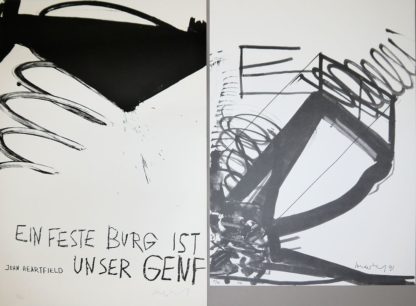 Kurt Rudolf H. Sonderborg, 1923 Sonderborg - 2008 Hamburg, Kurt Rudolf Hoffmann, deutscher Künstler und einer der wichtigsten Vertreter des Deutschen Informel, hier: Informelle Kompositionen, 2 x o.T. und "Ein feste Burg ist unser Genf-John Heartfield", 3 Lithographien, 80 x 60 cm/ 87 x 61 cm, 2 x dat. (19)72/ (19)91, handsigniert u. nummeriert IV/XIV 100/ IX/XX (100)/ 4/50, o. Rahmen