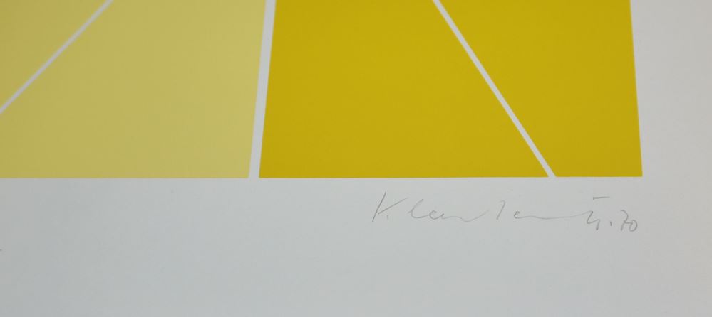Klaus Staudt, Geometrische Formen in Gelb, konkrete Kunst, signierte Farbserigraphie von 1970