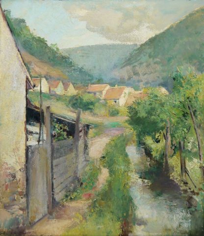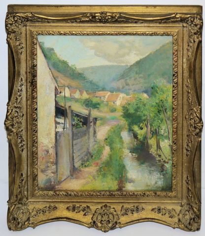 Karl Stohner, Dorf im Pfälzer Wald, Ölgemälde um 1920 im Originalrahmen