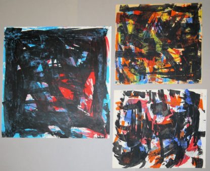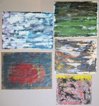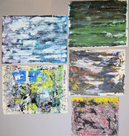 Rüdiger Tamschick, *1942 Leipzig - lebt und arbeitet in Stuttgart & Grasse/Südfrankreich, hier: 9 abstrakte Mischtechniken/Künstlerkarton, festes Papier, 40 x 50 bis 80 x 60 cm, 1 x unten mittig sign. u. dat. (19)95, 8 x unsign. & verso bez.