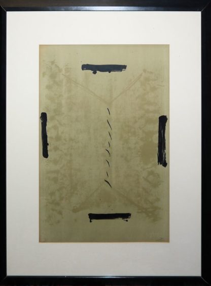 0401-Antoni Tapies, Quatre traces noires, signierte Farblithographie von 1963, gerahmt