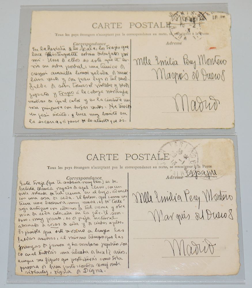 José de Zamora, paar Modezeichnungen "Robe de jardin" u. "Toilette de jeune fille", aquarelliert, von 1913 José de Zamora, 1889 Madrid- 1971, paar Tuschezeichnungen, aquarelliert/ Bütte, Postkartenformat, 14,3 x 9,2 cm, sign., bez., verso beschriftet und adressiert an Mlle. Montero in Madrid, guter Zustand de Zamora war Maler, Schriftsteller, Karikaturist, Modeschöpfer, Theater- und Filmausstatter und später Schauspieler. Studierte bei Eduardo Chicharro, bekannt wurde er vor allen für seine Modezeichnungen. Wie Erté machte er Entwürfe für Paul Poiret in den 1910/ 1920er-Jahren.