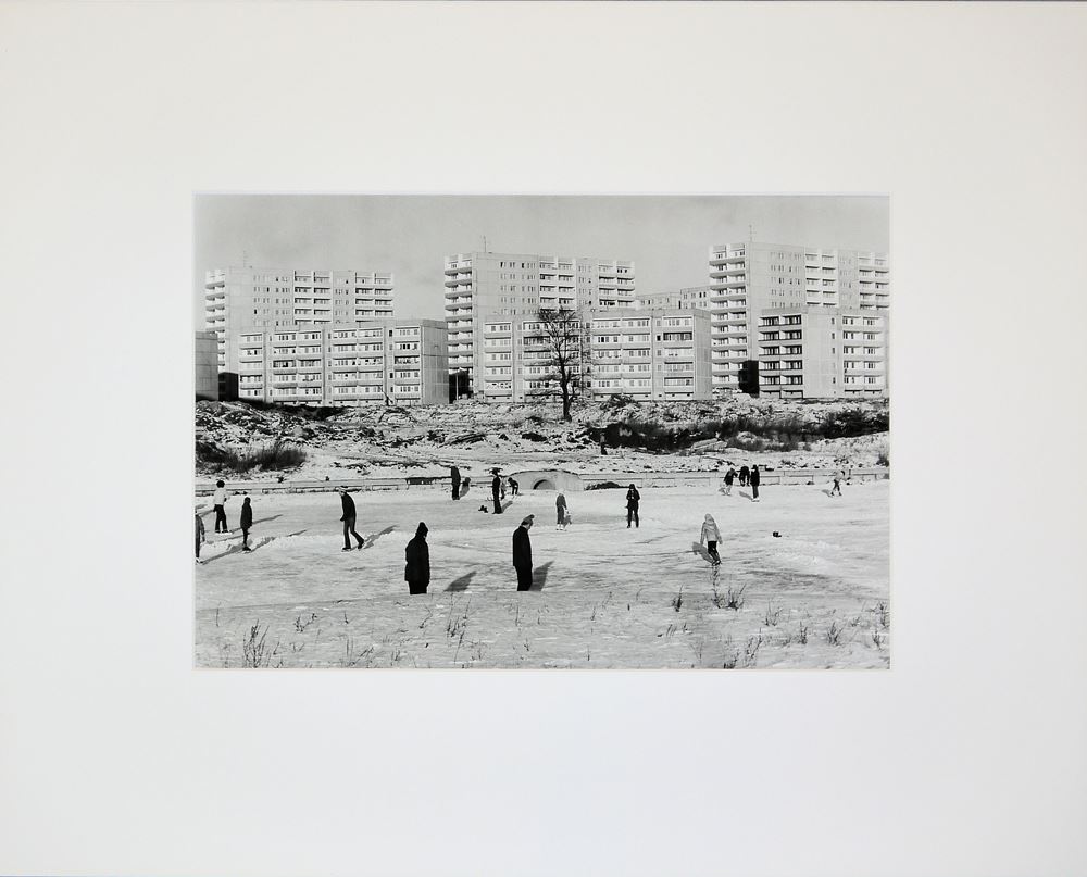 Sibylle Bergemann, 1941 Berlin - 2010 Gransee, "Berlin, 1980", Menschen fahren Schlittschuhe auf einem zugefrorenen Fluss, Fotografie, 27,5 x 41 cm, verso signiert, datiert und betitelt, unter P.p., o. Rahmen