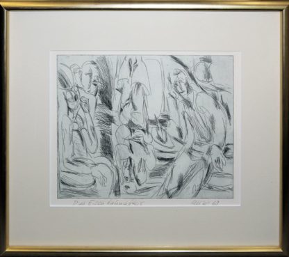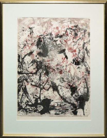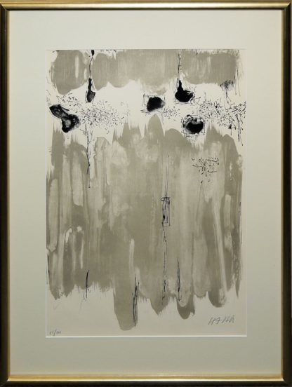 Fred Thieler (2x), Otto Herbert Hajek u.a., Nachlass mit 5 Blatt sign. Graphik der 1960er Jahre, alle ansprechend gleich gerahmt Fritz Wilhelm Richard „Fred“ Thieler, 1916 Königsberg - 1999 Berlin, deutscher Maler des Informel, hier: "F.R1/64", Aquatinta- Farbradierung, 40 x 30,5 cm, num. 5/25, sign. u. dat. (19)64 & Informelle Komposition, Farblithographie, 55 x 41 cm, num. 12/100, sign. u. dat.(19)63 // Otto Herbert Hajek, 1927 Kaltenbach, Tschechoslowakei - 2005 Stuttgart, deutscher abstrakter Maler, Grafiker und Bildhauer, hier: Abstrakte Komposition, Farblithographie um 1960, ca. 55 x 38 cm, num. 86/100, sign. // 2 x unleserlich sign. von 1963, "Das Eisenbahnabteil" & "Kafka - Amerika", Radierungen, 25 x 32 cm bzw. 31 x 33 cm, bez. u. sign., alle Arbeiten unter P.partouts in sehr guter Erhaltung gleich gerahmt mit qualitätvollen Galerierahmen