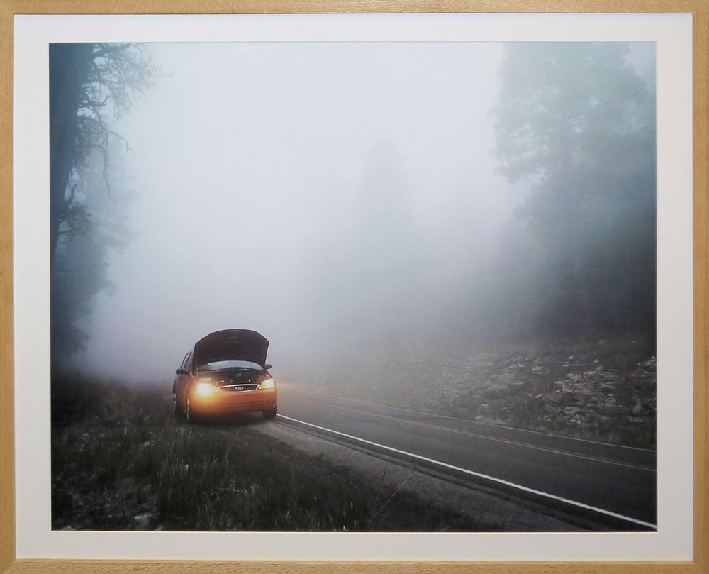 Amy Stein, *1970, "Route 14, New Mexico", Fotografie aus der Serie "Stranded", welche in den Jahren 2005 - 2011 entstanden ist, dafür fuhr Stein mehrere Jahre durch die USA, um gestrandete Autofahrer zu fotografieren, C-Print, 71 x 89 cm, unter Glas und P.p. ansprechend gerahmt (Artikel in der New York Times: https://archive.nytimes.com/wheels.blogs.nytimes.com/2010/12/14/stranded-a-photo-collection-of-breakdowns/)