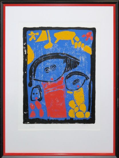 Giovanni Vetere, 3 Kinder, großer sign. Farblinolschnitt von 1990, in Galerierahmung