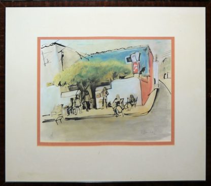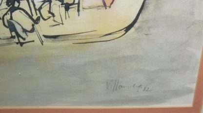 Antonio Villanueva, Straßencafé, Aquarell von 1982, gerahmt