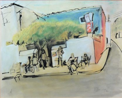 0418-Antonio Villanueva, Straßencafé, Aquarell von 1982, gerahmt