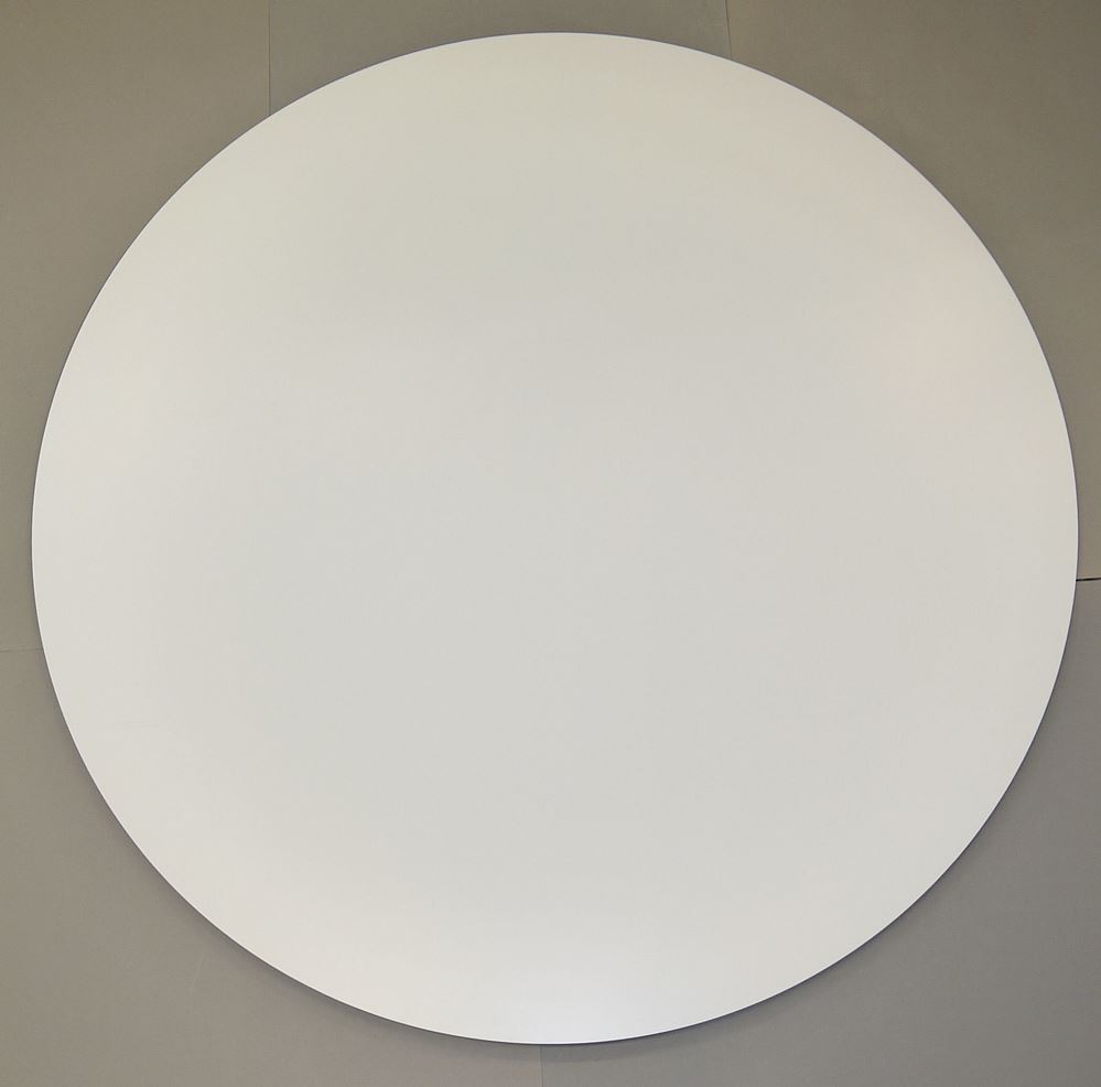 Ruby Anemic, *1975 Berlin, lebt und arbeitet in Berlin, Hidden Art Magenta, Aluminium, auf der Rückseite Pink lackiert, das Kunstobjekt wird mit der farbigen Seite an eine glatte weiße Wand gehängt, sodass ein farbiger Kranz durch die Reflektion mit der Wand entsteht, Dm 130 cm, Edition 4/8