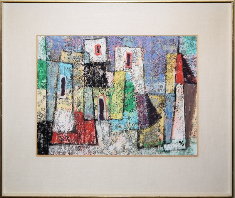 Heinrich Arrigo Franz Wittler, 1918 Heeren-Werve/Kamen - 2004 Worpswede, deutscher Maler, studierte an der Akademie München Malerei und Kunstgeschichte, nimmt Privatunterricht bei Christian Rohlfs, Eberhard Viegener und Otto Pankok, anschließend freischaffend in Ateliers in München und im Tannheimertal in Tirol, Mitte der 1950er Jahre Umzug nach Italien und 24 Jahre tätig auf Procida und Ischia, hier: Blick auf eine kubisch gestaffelte, mediterrane Siedlung, Öl/Karton, 34 x 46 cm, r. u. sign., unter P.partout galeriegerahmt