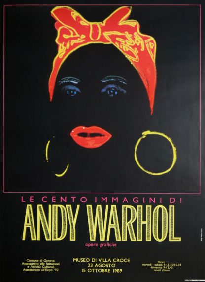 Andy Warhol, Le Cento Immagini di Andy Warhol, Ausstellungsplakat Genua 1989 & Andy Warhol "Géant" - 2000 images dont certains documents inèdits ou rarement publiés" Andy Warhol, 1928 Pittsburgh - 1987 New York City, rares Ausstellungsplakat " Le Cento Immagini di Andy Warhol, Museo Di Villa Croce", Genua 1989, Farboffset, 98 x 68,5 cm, o. Rahmen & Prachtband: Andy Warhol "Géant" - 2000 images dont certains documents inèdits ou rarement publiés", Phaidon, in bester Erhaltung