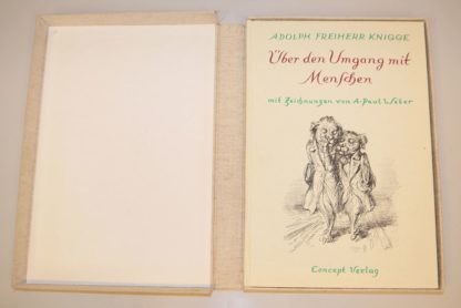 0434-Andreas Paul Weber, “Der Angler” 1951, “Liebling der Menge” 1955, “Beim Bouquiniste am Quai Voltaire” 1961, “Der Gefangene” 1966, “Unsterblicher Kasper” 1971, “Der Schachspieler” 1976, 4 sign. Lithographien & A. Freiherr v. Knigge, Über Umgang mit Menschen m. sign. Lithographie, 1974 sowie 2 x Tierbilderbuch, einmal signiert und einmal mit sign. Lithographie