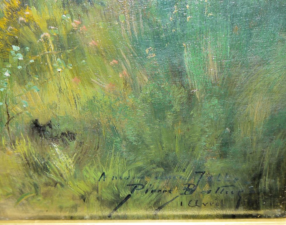 Zum Künstler: Pierre Ernest Ballue studierte in Paris, wohin er 1867 mit seiner Familie zog, Malerei bei Alexandre Defaux, Émile Charles Dameron und Camille Corot. Er stellte regelmäßig im Salon aus und wurde mit mehreren Medaillen ausgezeichnet. Sein bevorzugtes Malgebiet war die Touraine, doch er bereiste ganz Frankreich, die Côte d’Azur, die Gegend um Crozant und Fresselines. 1886 gehörte er zu den Künstlern, die Auguste Bartholdi in die Vereinigten Staaten begleiteten, um die Einweihung der Freiheitsstatue zu feiern. Seine Werke sind im Musée Bertrand, im Louvre und im Musée des beaux-arts de Tours zu sehen.