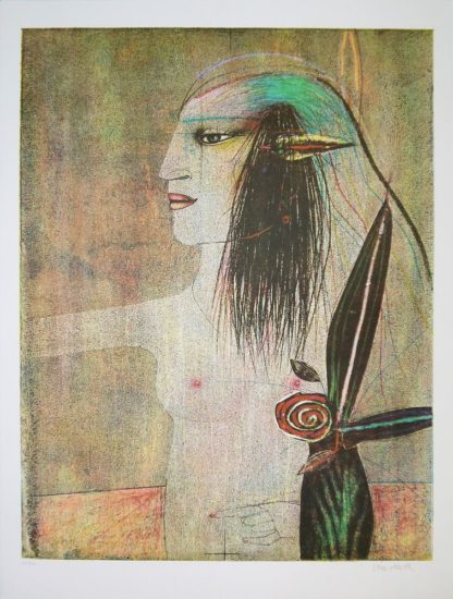 Paul Wunderlich, Graphikkonvolut mit 5 signierten Farblithographien Paul Wunderlich, 1927 Eberswalde - 2010 Saint-Pierre-de-Vassols, Traum einer Odaliske, Farblithographie, 79 x 60,5 cm, signiert, bezeichnet e.a. / Die Braut, Farblithographie, 75 x 55 cm, signiert, nummeriert 20/80 / Selbst mit Hase, Farblithographie, 79,5 x 59,5 cm, signiert, nummeriert 22/100 / Selbstportrait, Farblithographie, 90 x 64 cm, signiert, nummeriert 13/35 / Gelbe Vase, Farblithographie, 89,5 x 64 cm, signiert, nummeriert 120/150, alle o. Rahmen