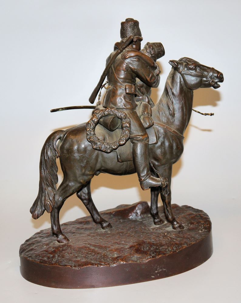 0458-A. M. Bonegor, Bronzegruppe Abschied eines Kosaken, Russland um 1880
