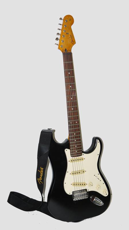 Einer der Klassiker unter den Elektrogitarren, schwarz lackierter Korpus, drei singlecoil pickups, ohne Tremolobügel, technisch einwandfrei und in gutem Zustand, mit Tragetasche