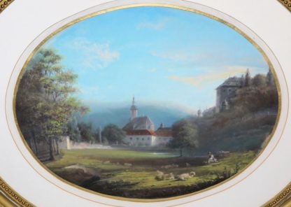 0472-Baden-Baden-Romantiker, Blick vom Neuen Schloss auf die Stiftskirche, großes ovales Pastell um 1840, original gerahmt
