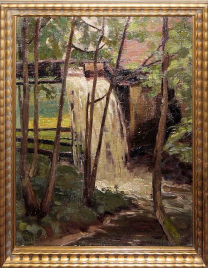 Carl Werner, Kleiner Wasserfall an Schleuse, Ölgemälde von 1831, gerahmt