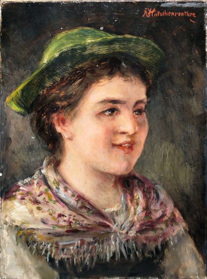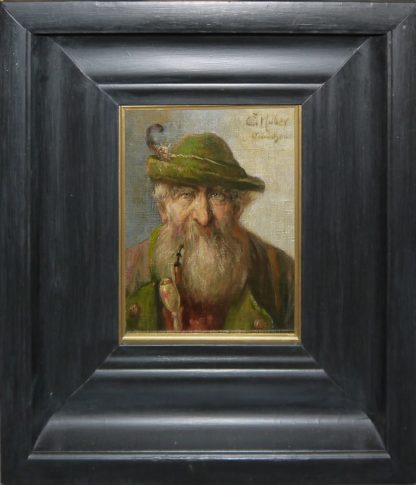 Arthur Hutschenreuther, 1849 Wallendorf/Thürigen - 1914 München, Halbporträt einer jungen Frau in alpenländischer Tracht, Öl/Holz, 18 x 14 cm, r. o. sign. // Carl Rudolf Huber,1839 Schleinz - 1896 Wien, österreichischer Maler und Grafiker, Halbporträt eines bärtigen Mannes mit Tirolerhut, eine Pfeife rauchend, Öl/Lw. um 1880, 30 x 25 cm, r. o. sign. u. bez. München, in breitem Originalrahmen (55 x 48 cm) // Andrei Ilech Potapenko,1925-2011, große orthodoxe Klosteranlage auf der Landzunge eines Sees, Öl/Lw., 45 x 60 cm, l. u. sign., gerahmt sowie Monogrammist HL, zwei verschleierte Frauen, Hinterglasmalerei, 42x34cm,gerahmt