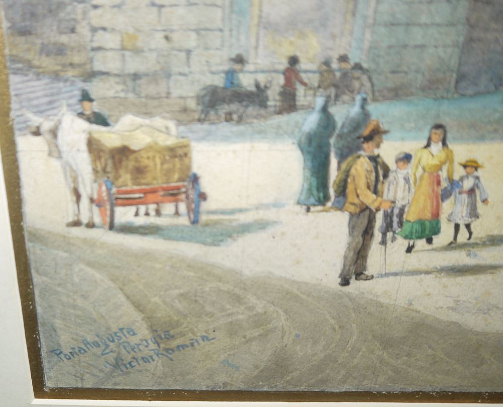 0503-Viktor Roman, “Porta Augusta Perugia”, signiertes Aquarell, gerahmt