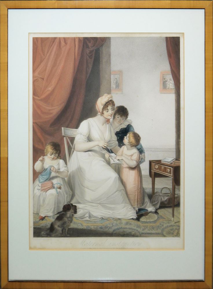 0509-Nicolo Schiavonetti / Henry Singleton, “Maternal instruction” & “Maternal love”, 2 große handkolorierte Kupferstiche, London 1804, beide gleich gerahmt