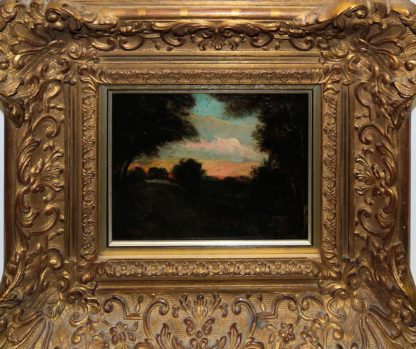Louis Aimé Japy, 1839 Seloncourt (Doubs) - 1916 Paris, französischer Maler der Barbizon-Schule, Landschaft bei Sonnenuntergang, Öl/Karton, 17,5 x 23 cm, sign., im prächtigen Goldstuckrahmen