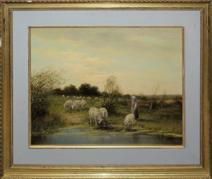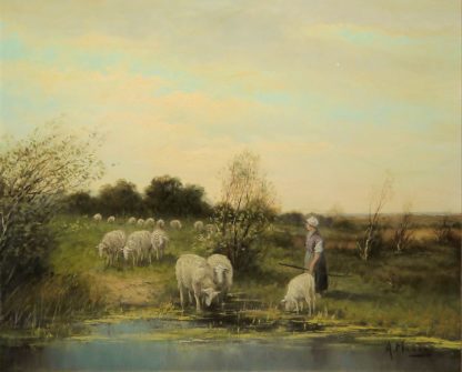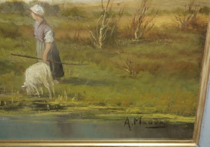 0526-Anton Mauve, Schäferin mit Schafen an der Tränke, Ölgemälde, gerahmt
