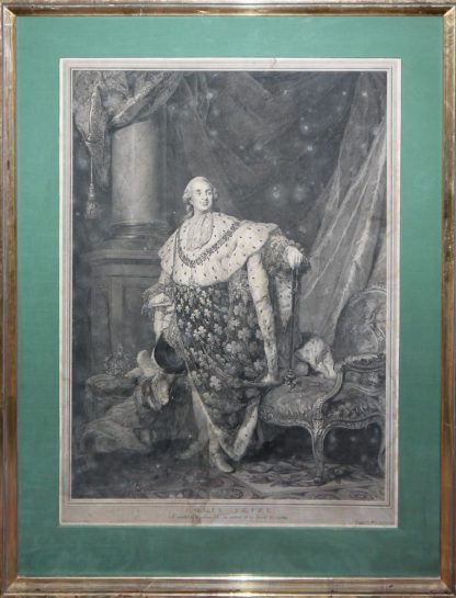 Johann Gotthard Müller, ab 1808 von Müller, 1747 Bernhausen- 1830 Stuttgart, deutscher Kupferstecher, Portrait des Louis Seize nach dem Gemälde von Joseph - Siffred Duplessis (1725 - 1802), 71 x 54 cm, hinter P.p. und Glas gerahmt, stellenweise stockfleckig