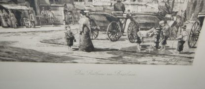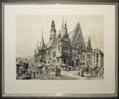 0556-Hugo Ulbrich, “Das Rathaus zu Breslau”, große Radierung von 1903 in bester Erhaltung, in Galerierahmung