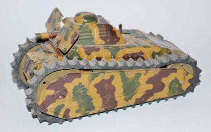 Blechpanzer des WK2 von TipCo Raupenpanzer aus lithographiertem Blech, Federwerk intakt, der klappbare Schutzschild stoppt den Schlitten im Falle eines Treffers, aufgrund der altersbedingt etwas gedehnten Raupen fährt er etwas schleppend, mit Schlüssel, L 20 cm