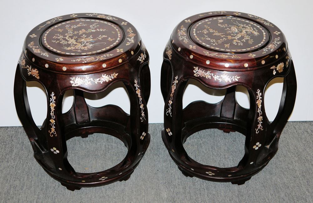0570-Zwei chinesische Edelholz-Hocker mit Perlmuttintarsien