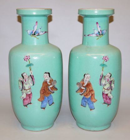Paar Rouleau-Vasen mit Unsterblichen, späte Qing/Republik-Zeit, China 19./Anfang 20. Jh.