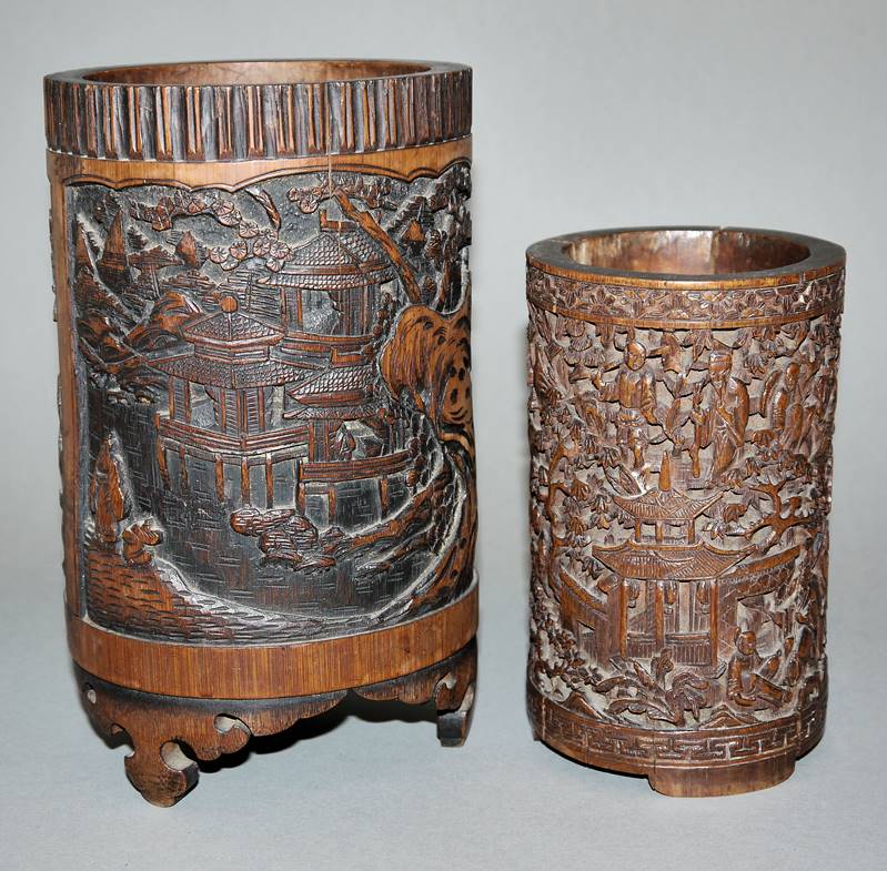 Zwei Bambus-Pinselbecher der Qing-Zeit, China 19. Jh.
