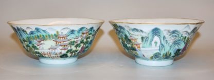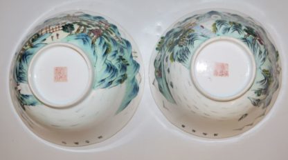 0573-Paar Porzellanschalen mit Landschaftsszene aus der „Alten Höhle des Weißen Hirsches“, Daoguang-Marken und wohl aus der Periode, China um 1820-50
