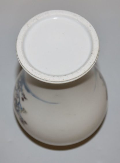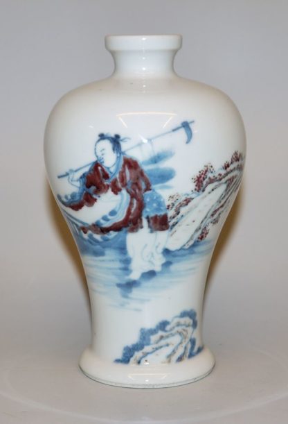 Blauweiß-Porzellanvase mit eisenroten Akzenten, bemalt mit der wandernden daoistischen Unsterblichen mit Grabstock, ungemarkt, H 15,3 cm