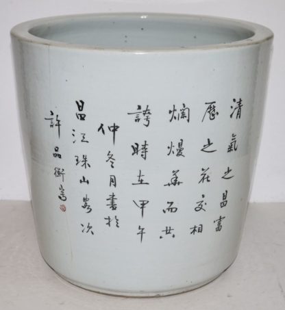 0588-Großer Pflanztopf mit Kostbarkeiten und Kalligraphie, sign. Xu Pin Heng, China um 1900
