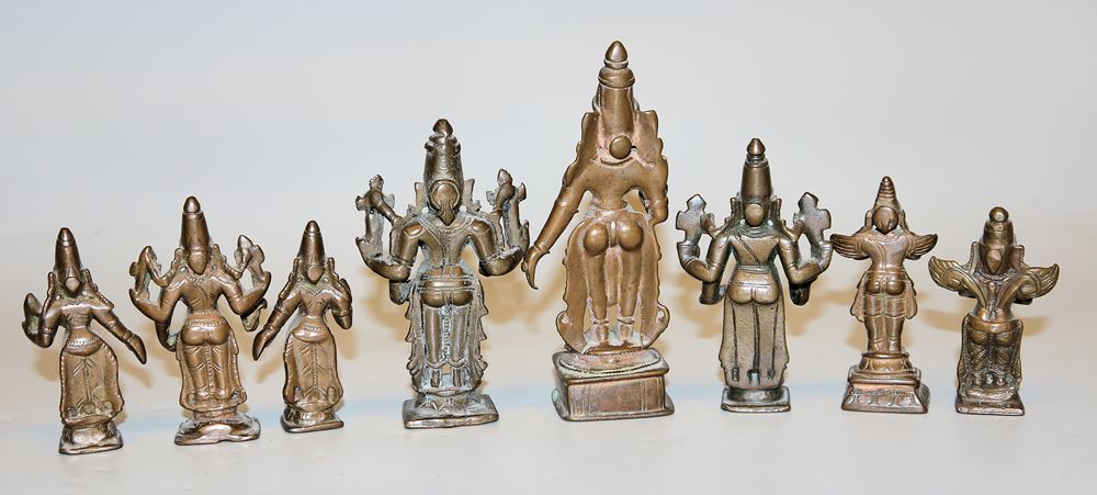 0612-Acht Kleinbronzen aus Hausaltären Süd-Indiens, 18. Jh.