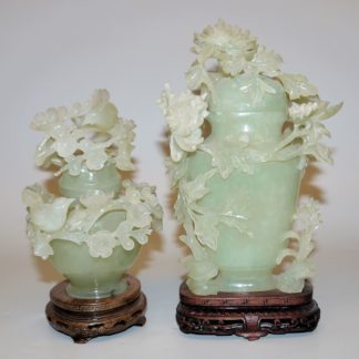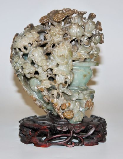 0614-Feine Jadeschnitzerei mit Blumen und Glücksbringern, China 20. Jh.
