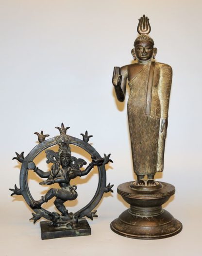 0657-Stehender Buddha aus Sri Lanka und ein tanzender Shiva, zwei Bronzeplastiken, Mitte 20. Jh.